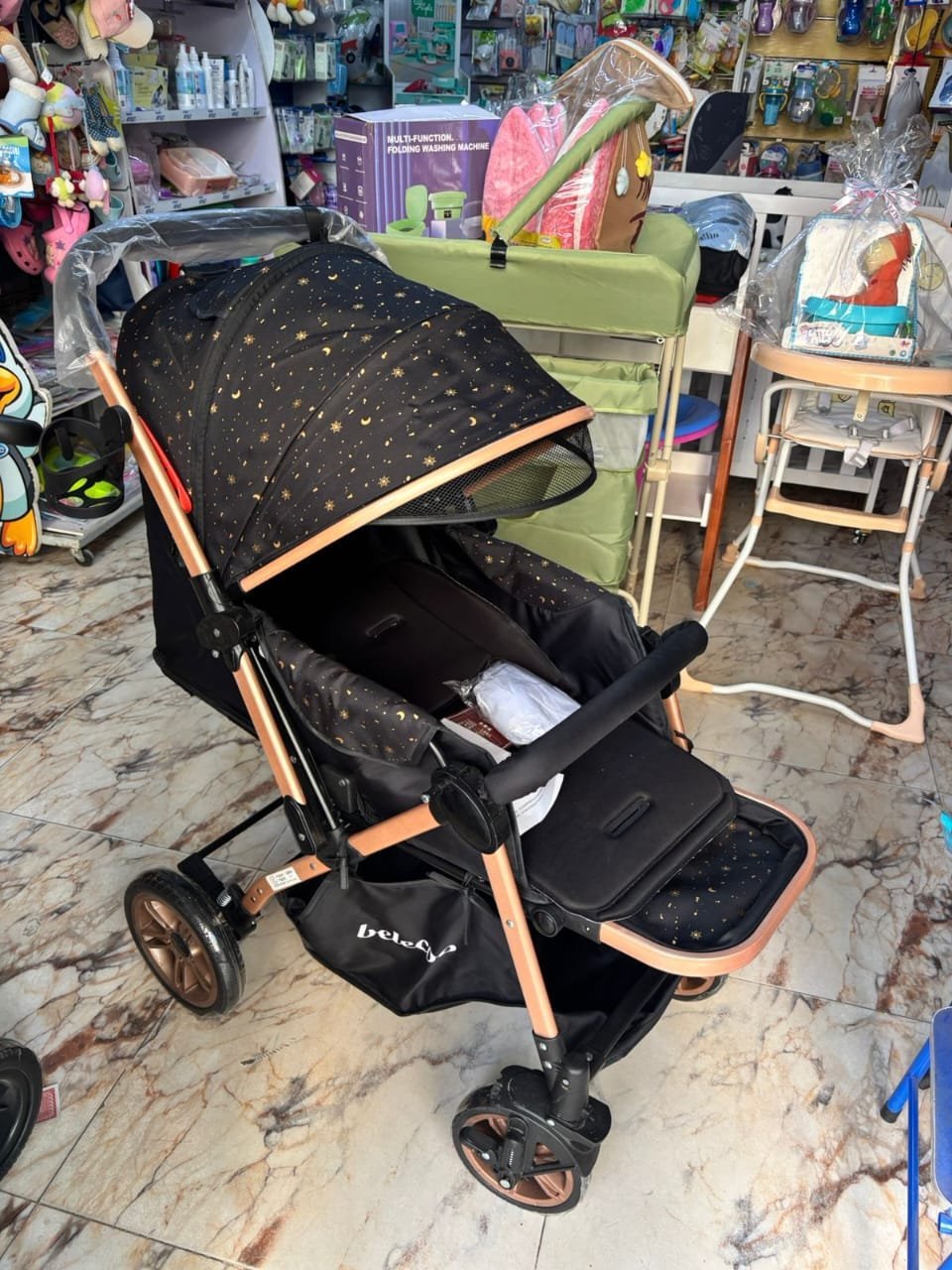 مستويات الضهر/عجل كاوتش/مخزن لأغراض البيبي /بطانه /كل هولدر /سهله الغلق /خامه واتر بروف /تسانده كامله /شاسبه بالكامل معدن